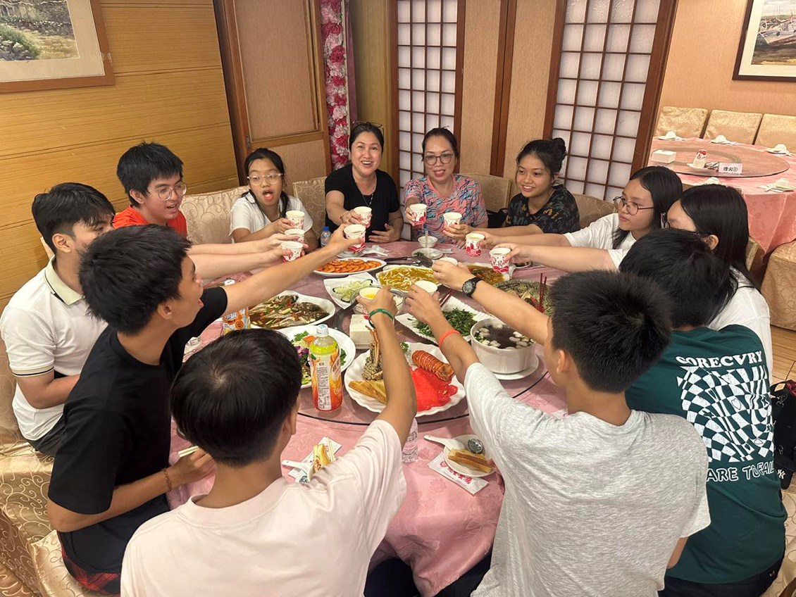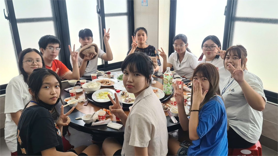 Sự hiếu khách và chu đáo của nước bạn được thể hiện qua buổi tiệc chào đón đoàn học sinh Việt Nam vô cùng hoành tráng, siêu chất lượng với nhiều món hải sản đặc trưng của vùng biển Bành Hồ và chỗ lưu trú là khách sạn cao cấp tại địa phương.